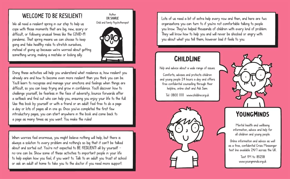 Everyone needs a resilient spring in their step to help them cope with moments that are big, new, scary or difficult, or following unusual times like the COVID-19 pandemic. The encouraging and simple activities and exercises in this book will help children to understand what resilience is, how resilient they already are and how to become even more resilient, They will develop the skills to recognize and manage their emotions and feelings, and overcome challenging experiences. The quirky illustrations will keep children entertained and focused as they work through the book - or they can simply dip into the pages for ten minutes of calming doodling, coloring or writing.