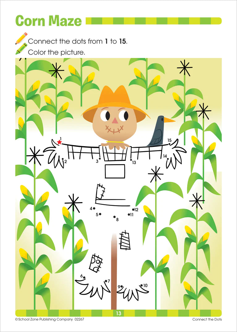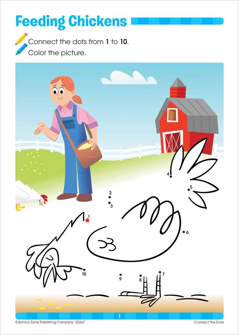 Number by number kids begin to see the big picture! Following the dots reveals charming farm-themed pictures to color including fluffy sheep, delicious apples, dancing chickens and so many more. This workbook from the Get Ready™ series has dot-to-dot puzzles that start out using numbers 1-10, then move on to 1-20, and 1-25 as the book progresses. Number and counting skills grow, and so do the fine motor skills needed for writing! These playful scenes encourage focus and spark imagination too.