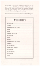 Mad Libs is the world’s greatest word game and a great gift for anyone who likes to laugh! Write in the missing words on each page to create your own hilariously funny stories all about field trips. Do you get bored on long VEHICLE rides? With Field Trip Mad Libs, you’ll be having so much fun, you won’t even remember to ask, “Are we there yet?”
