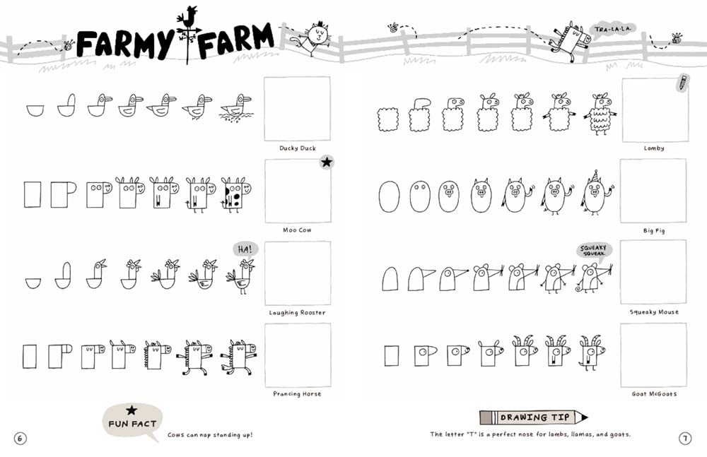 This is NO ORDINARY how-to-draw book! It’s simple (only 7 steps) and so much FUN! Includes drawing tips, animal facts, and bonus drawing activities!