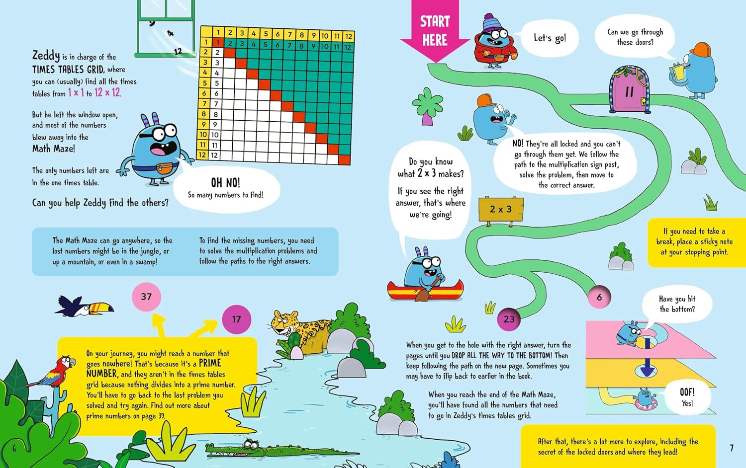 Mega Math Maze is an engaging way to way to reinforce multiplication facts. Each time students explore the mazes they’ll find new information that helps to build their math comprehension. The super accessible, illustrated backmatter provides bonus information about multiplication patterns, as well as tips and tricks, special numbers, and more.