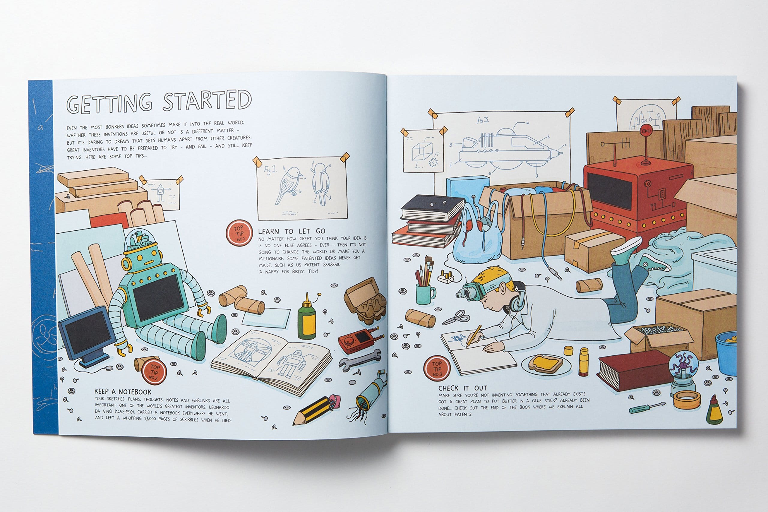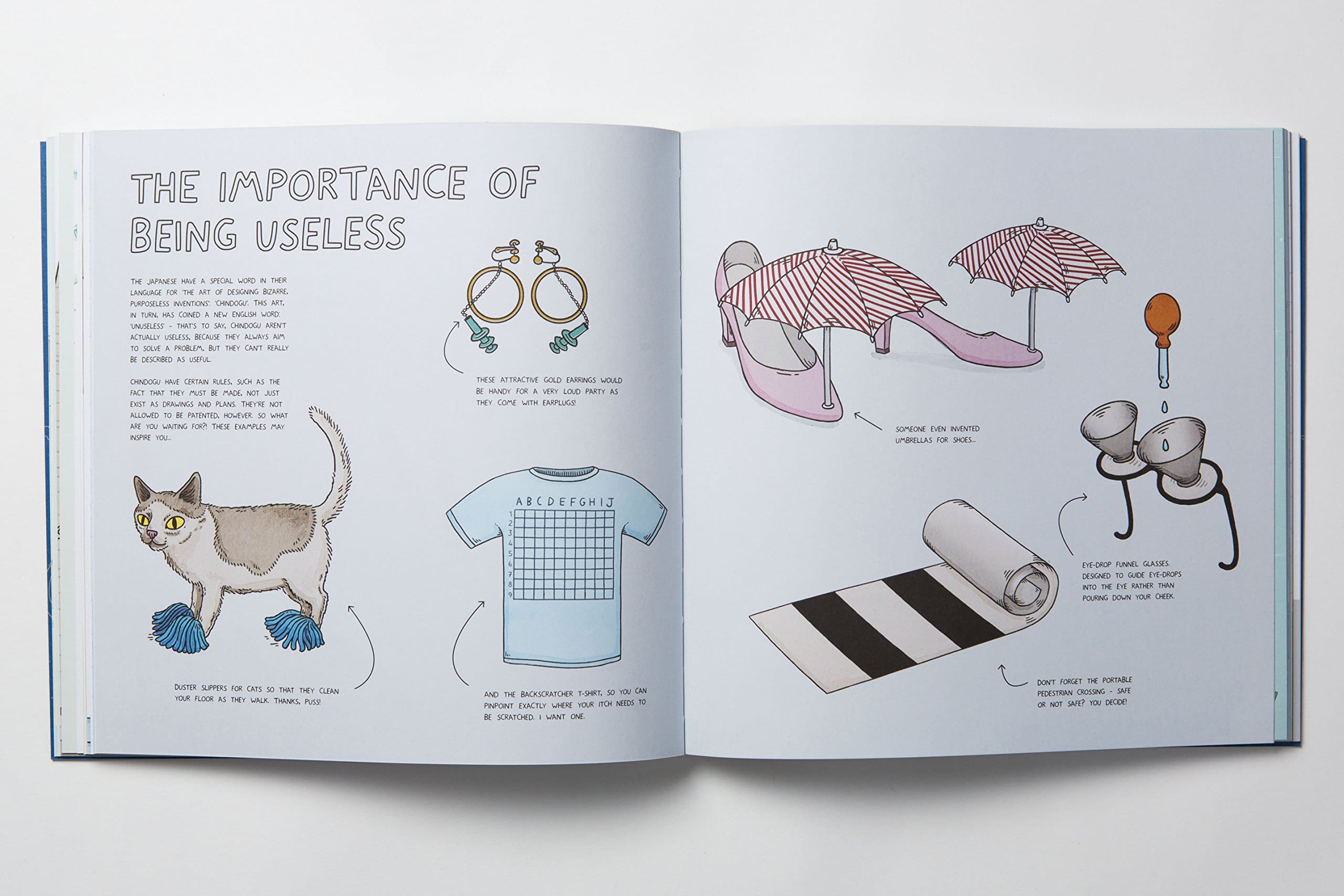 This book is jam-packed with Andrew Rae’s amazing drawings showing all sorts of real inventions that seem too weird to work. How about a dog umbrella? A submarine that looks like a plane… or even a shark. A swimming machine where you don’t get wet? A car wash for people? Someone has even made a device to charge your phone using a hamster!