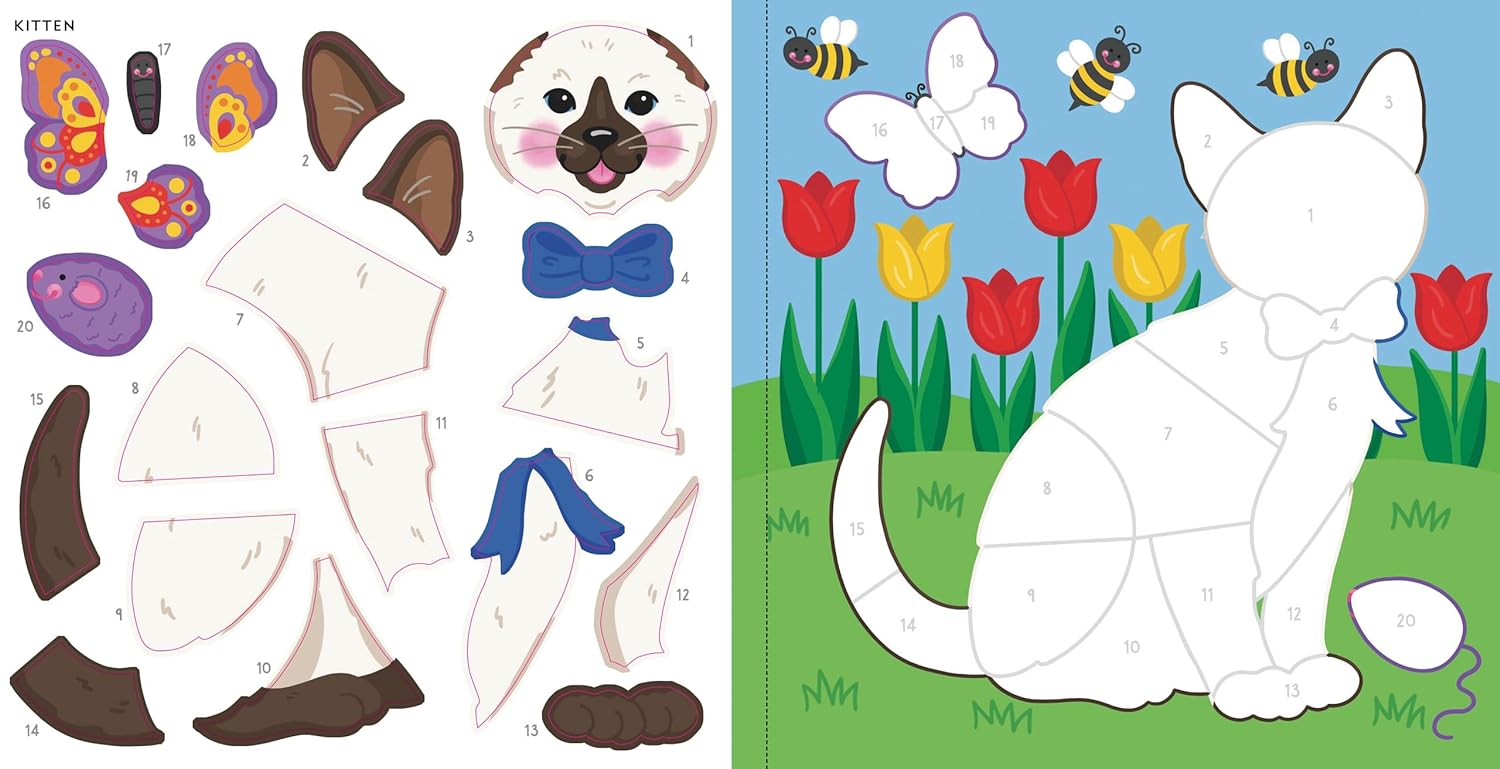 My First Color-by-Sticker Furry Friends is just right for young children who love cuddly animals and sticker art! Sticker book comes with 14 simple animal-themed scenes to ''color'' with the stickers provided. Extra-large stickers are perfect for little hands! Simply place each numbered sticker on the matching number of each picture. Bright, full-color stickers bring each scene to life! Scenes feature a red fox, a kitten, a bunny, and 11 more! Includes fun facts about furry friends! Sticker book pages are perforated, making it easy to remove each scene for display. Art activity also provides a fun way to learn and practice number recognition! Sturdy card stock pages. Pages are printed only on one side. Ages 4 and up. Sticker book measures 8-1/2'' square. 58 pages.