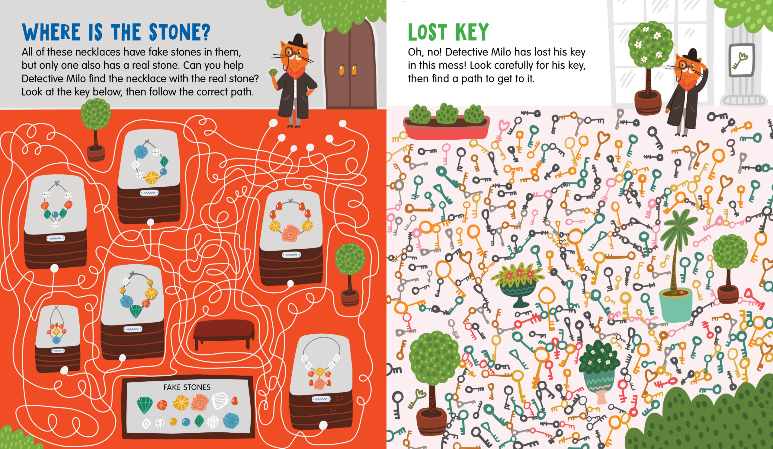 This fun, full-color book of mazes contains more than 25 challenging mazes for children to complete. Each activity features a different exciting and fun mystery for children to figure out. The mazes are designed to promotelogical thinking, and also enhance hand-eye coordination as children learn to manipulate a writing instrument to follow the mazes. The puzzles are straightforward enough for children to complete on their own, but also ambitious enough to provoke thought and reasoning. Young minds will be entertained for hours! This is the perfect gift for children who love mazes and mystery games!