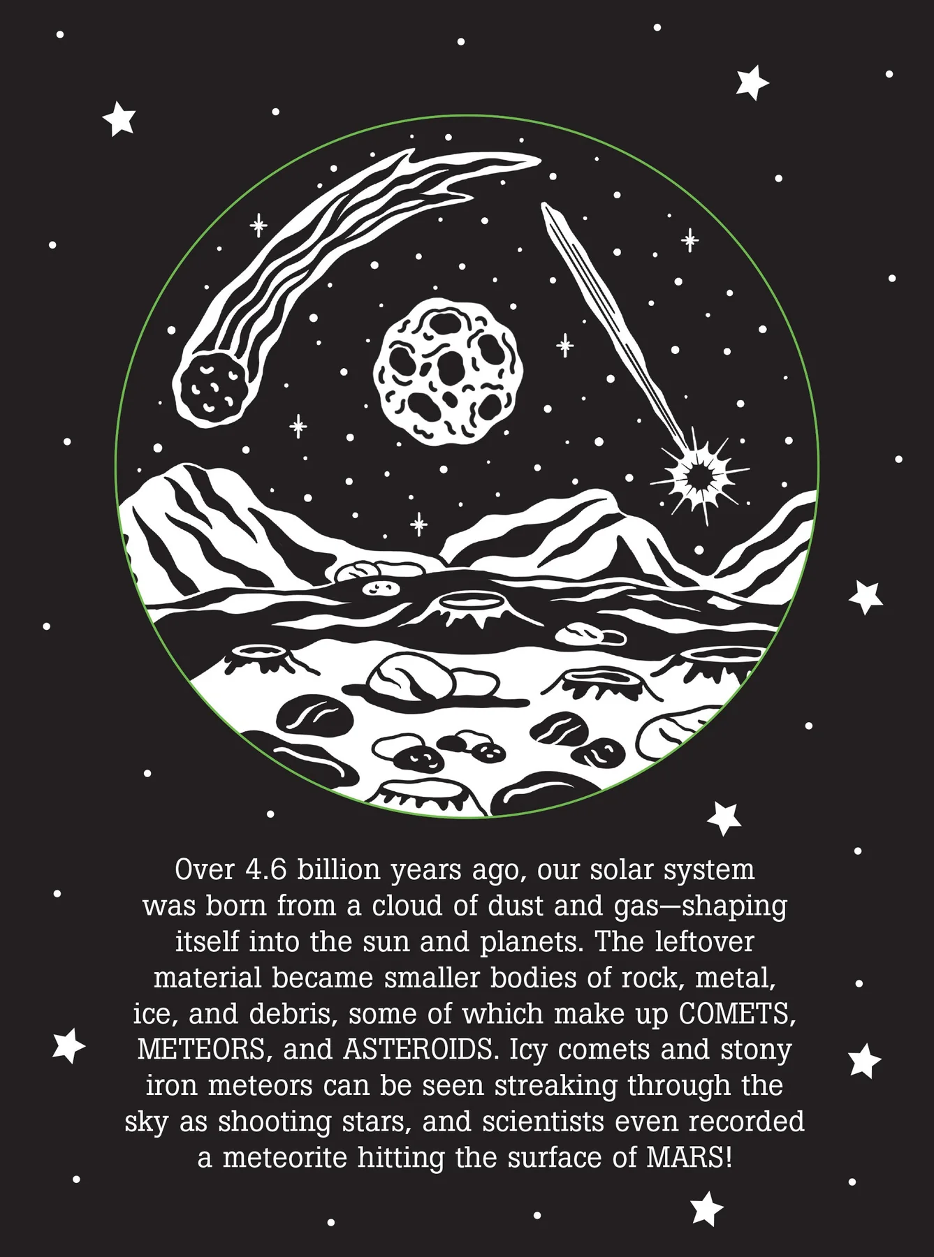 Travel to the moon, sun, and stars as you learn fun facts about planets, comets, the Milky Way, and more!