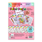 25 Pages with a paint strip on each page. Watercolor printed on each page, just add water! The adorable artwork in this watercolor painting book for kids has just the right amount of detail for young artists. A mesmerizing mer-kitty, delightful dragon, and a flying unicorn are some of the many creatures ready to be painted. With perforated tear-away sheets. Unique format with indent for brush right inside the pages! So easy to tear out a page and start painting!