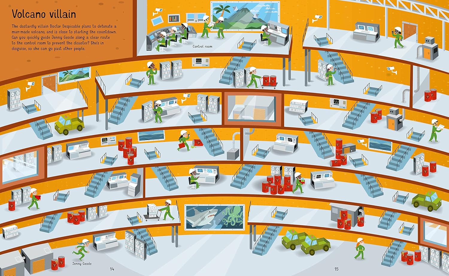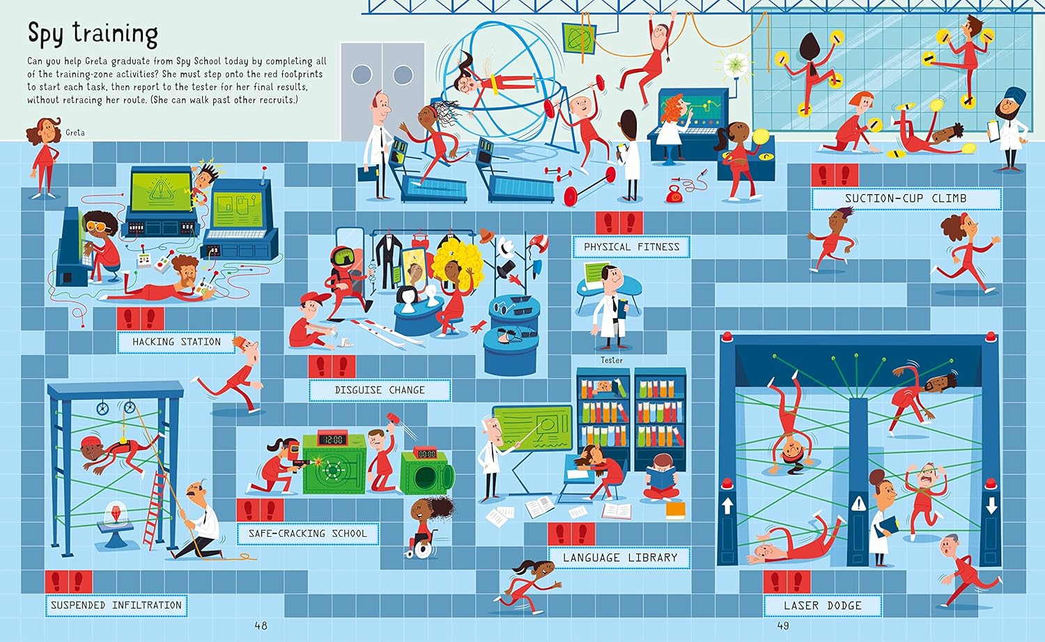 Infiltrate top-secret bases, navigate laser networks and escape in high-speed pursuits as you delve into the world of espionage in this stylish selection of mazes. Each maze is more challenging than the last, from following snowy footprints to decrypting codewords, and all the answers are at the back if you get stuck.