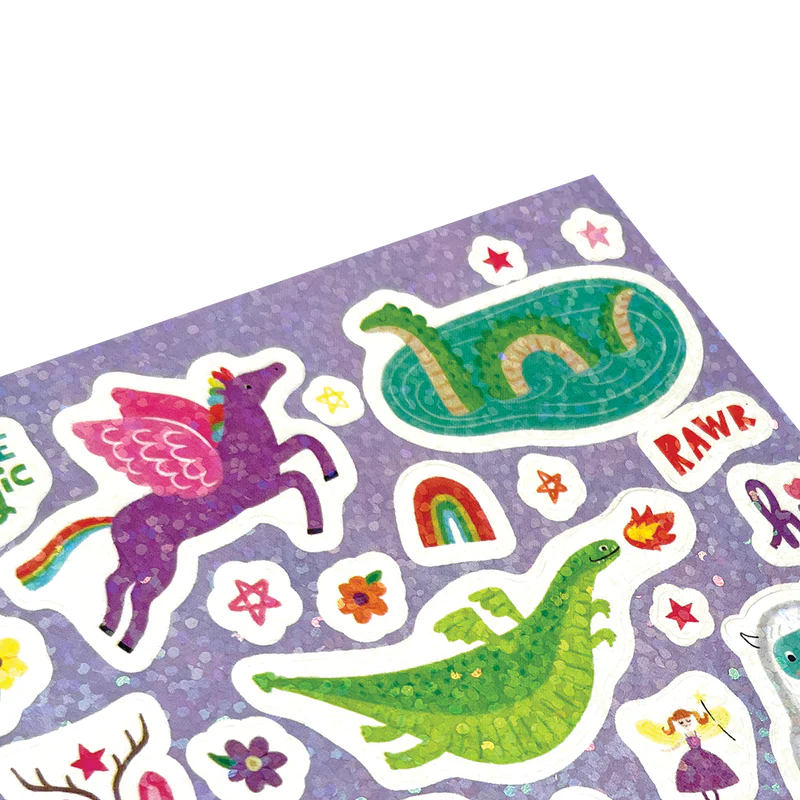 Encourage your imagination with this sweet sticker sheet from the Stickiville collection. This holographic glitter sticker sheet features imaginary animals that will excite your creative spirit and help you imagine a world of your own making!