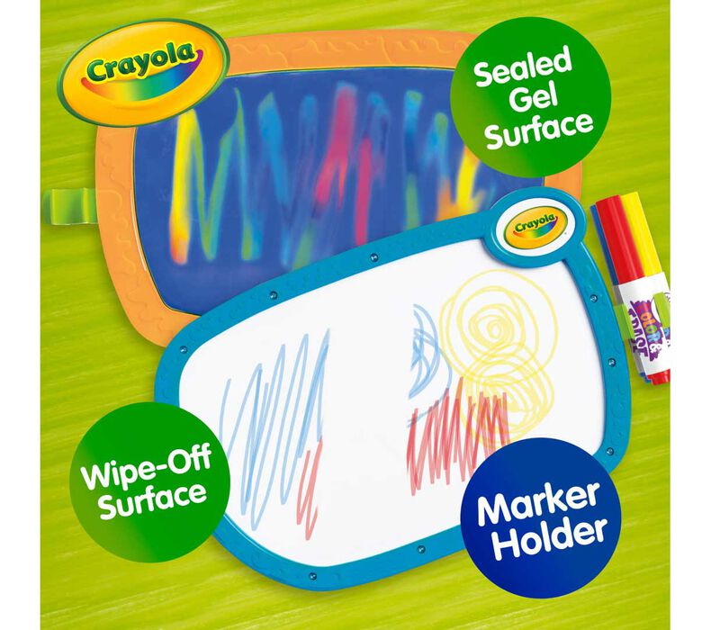 Unleash your little Picassos with the 2-in-1 Crayola Young Kids Double Doodle Board - expertly designed for tidy drawing, coloring, and doodling. Take joy in a clean, mess-free creative journey on the gel-sealed side of this board, then pull a quick flip and let the colors dance on the reusable drawing side! The added versatility brings tactile joy to this sensory toy for kids. This doodle board includes 3 Crayola Washable Markers that wash off skin and most washable clothing, making it a great travel activity for toddlers and young kids. Give it as a gift on birthdays, holidays, or everyday gifting occasions. Safe and nontoxic for ages 3 and up.