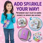 The fun continues even after completing the craft! Kids can add sparkle to their favorite accessories by embellishing them with the DIY stickers they created. Jazz up items like journals, pencil cases, lunch boxes, backpacks, notebooks, water bottles and much more.