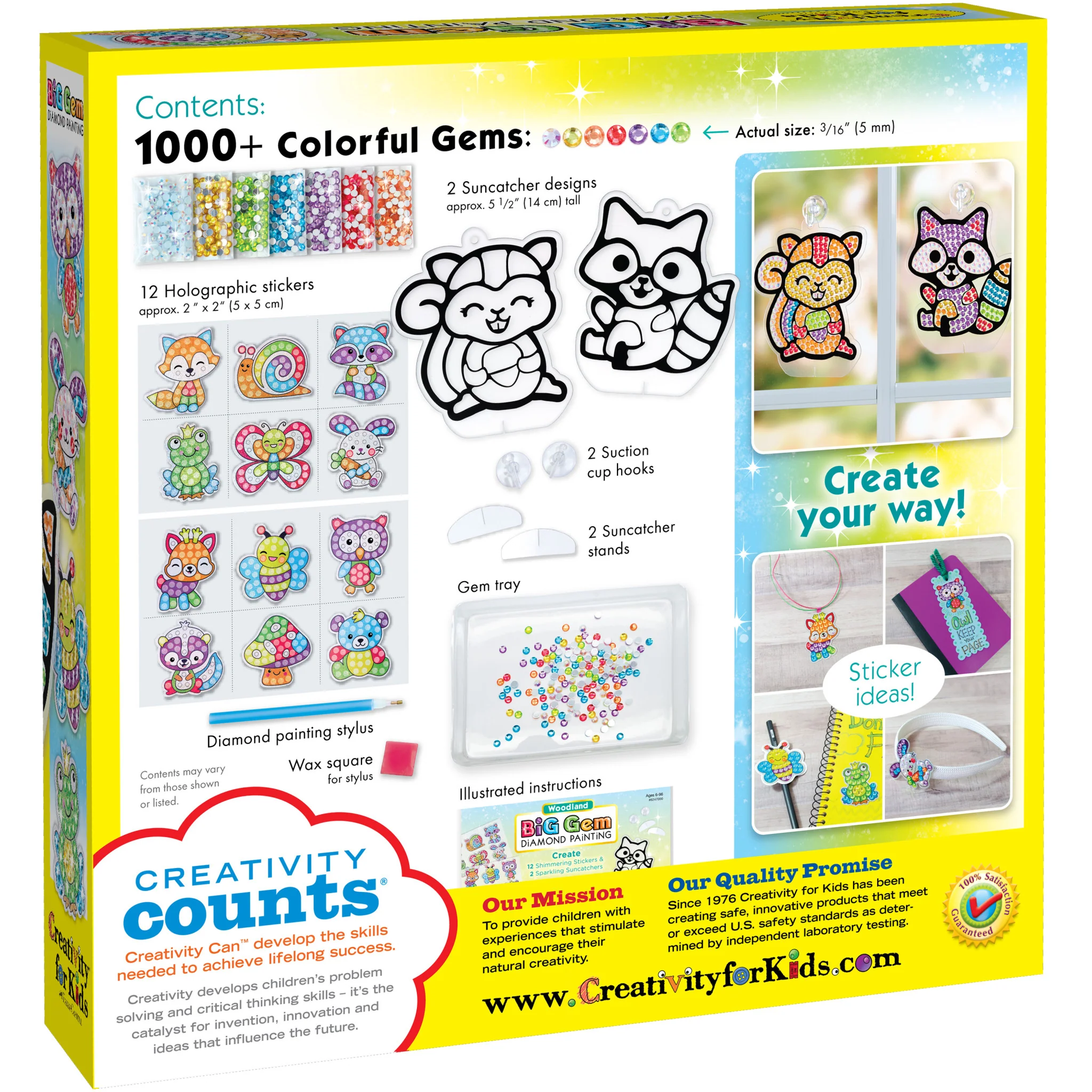 Add sparkling dimension to your traditional coloring and painting crafts with Big Gem Diamond Painting Woodland! This kit introduces the joy of diamond painting to children in a straightforward way with large sparkling gems, an easy-to-use stylus, and adorable woodland images for them to proudly create and display their own diamond art.