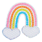 The super size rainbow foil sticker has a pre-printed color guide for kids to easily follow. With a no glue, no mess 2 step process: pick up and place, kids can create their own super sticker without difficulty. Pearlized bubble gems add depth and dimension for sticker art that pops!