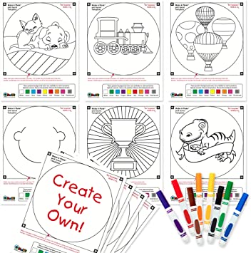 Kit includes: 6 Ready to color templates, 4 blank ready to draw templates, Washable markers, & 1 FREE prepaid item certificate