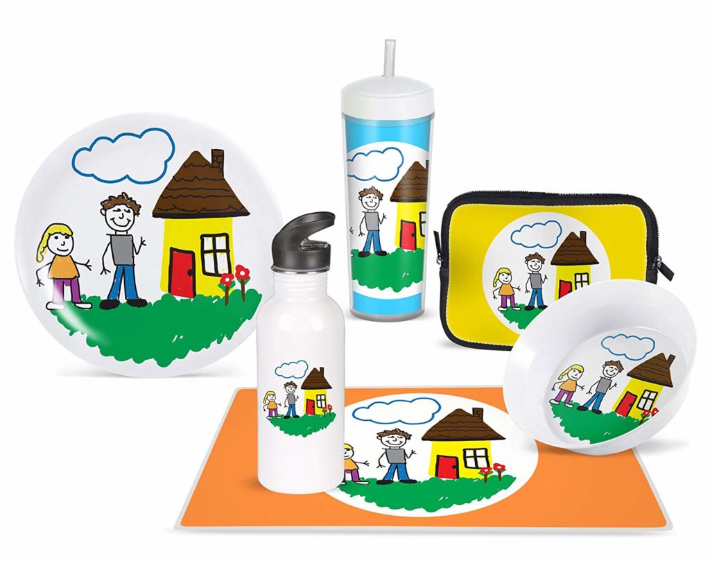 Preserve your art on a special keepsake - choose from 6 products: melamine plate, melamine bowl, stainless steel water bottle, plastic travel tumbler, tablet sleeve/pouch, two-sided laminated placemat