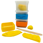 MODO is more than just dough — each box features three vibrantly colored doughs in sturdy reusable 6-oz containers with lids, with the added play features of plastic textured stamping bands with four patterns each and a wooden sculpting tool. MODO encourages parent/child bonding through simple exploration and play, focusing on tactile learning and development. MODO's vibrantly-colored formula is made with simple non-toxic, BPA-free, phthalate-free, and fragrance-free ingredients. MODO's vibrant colors, clean scents, and cool tools will inspire young minds to create. Squish, play, learn, repeat.