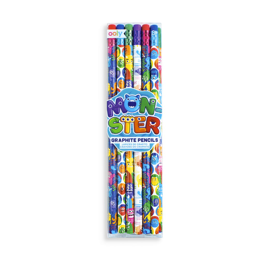 Spooky, creepy or weird; it doesn't matter because Monster Pencils are your new best friends! This set of graphite pencils will make homework, school work and anything else you write or draw super fun. Monster Pencils are a set of 12 graphite pencils each with different, and kooky, monster designs and colors. No. 2 graphite.