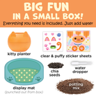 Creating a kitty plant pet is easy! Decorate kitty planter with 3D stickers, plant chia seeds, add water and watch it grow! Quick-growing chia seeds sprout in as little as 3-5 days with just a little water. The potting mix is vermiculite and all seeds are sourced and packaged in the USA. The indoor garden kit has enough chia seeds for 2 plant grow cycles.