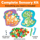 Preschool age kids will have fun discovering colors and sizes as they witness dinosaur friends come to life through this engaging art activity. Tailored for toddlers, interactive "pop & push" pom pom kit requires no glue, ensuring less mess, more fun and allowing for repeated use! 2 illustrated, soft foam felt boards securely hold brightly colored pom poms in place. Toddler activities foster moments of quiet time and independent play. With non-toxic, safety-tested components, kids can indulge in hours of educational fun. As they engage their senses and refine fine motor skills, they'll immerse themselves in hands-on play and imaginative storytelling. Encourage your kids to tell their own stories about their dinosaur buddies as they craft and play. Play or display! Toddlers can create dinosaur pictures over and over again or you can display their designs with the included hanging string. Travel friendly, keep the kids entertained while you're on the move. Use the convenient zip and seal storage bag for anytime fun on-the-go! Ages: 3+ Contents Include: 2 Pre-cut illustrated felt boards, Assorted pom poms, 2 Hanging strings, Wiggly eyes, Storage bag and Instructions