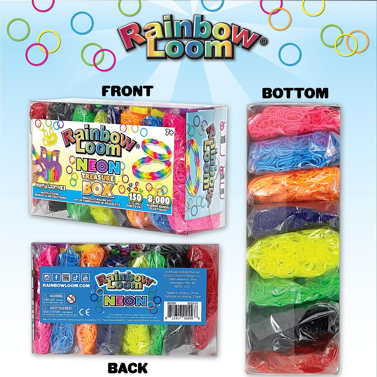 The Neon Treasure Box rubber band model from Rainbow Loom is the perfect craft to keep your kids busy for hours! With over 8,000 bands in this kit and 150 clips, the amount of bracelets your child can make are endless. If your kid cannot get enough after this set, you are in luck! The treasure box edition has 3 other kits to let your child's imagination run free. These high quality latex-free rubber bands with great elasticity are the original rubber band bracelets first ever made by multiple TOTY award winning Choon's Design the creator of Rainbow Loom. Recommended for ages 7 and up.