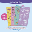 Oodles of cute, cool, and classic ideas for nail art--using polish you already have at home! With 60+ step-by-step designs, this book includes inspiration and instructions that work with just about any colors. Designs include cute animals, trendy food, holiday style, and much more! Plus, you'll find a double-ended detail tool and more than 700 stickers to level up your at-home manis.