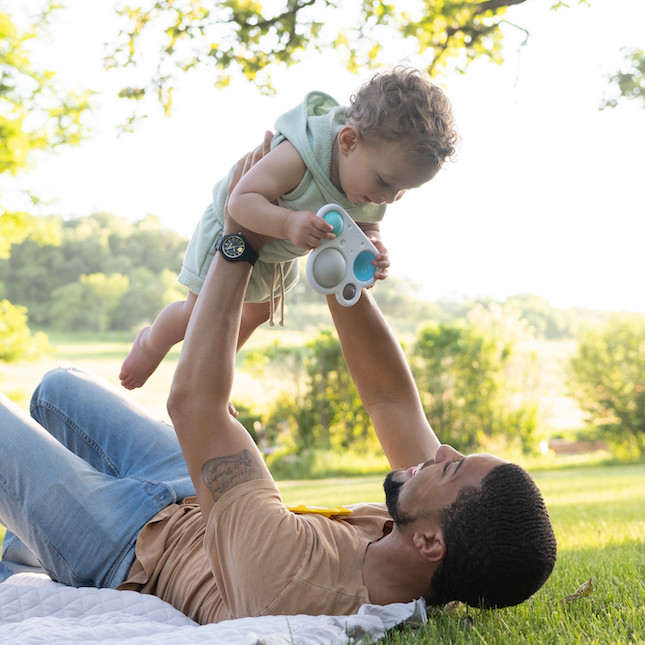 Explore the four classic dimpl bubbles built into the rigid frame of the billow. They're endlessly fun to poke and pop again and again.