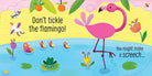 You'd better not tickle the crocodile - because it just might growl if you do! Babies and toddlers will love tickling the soft touchy-feely patches in this charming book to hear the surprising sounds the animals make. You can also meet (and tickle if you dare) a flamingo, a rhinoceros and a leopard, before all the animals get noisy at the same time in a musical finale guaranteed to get little ones dancing along.