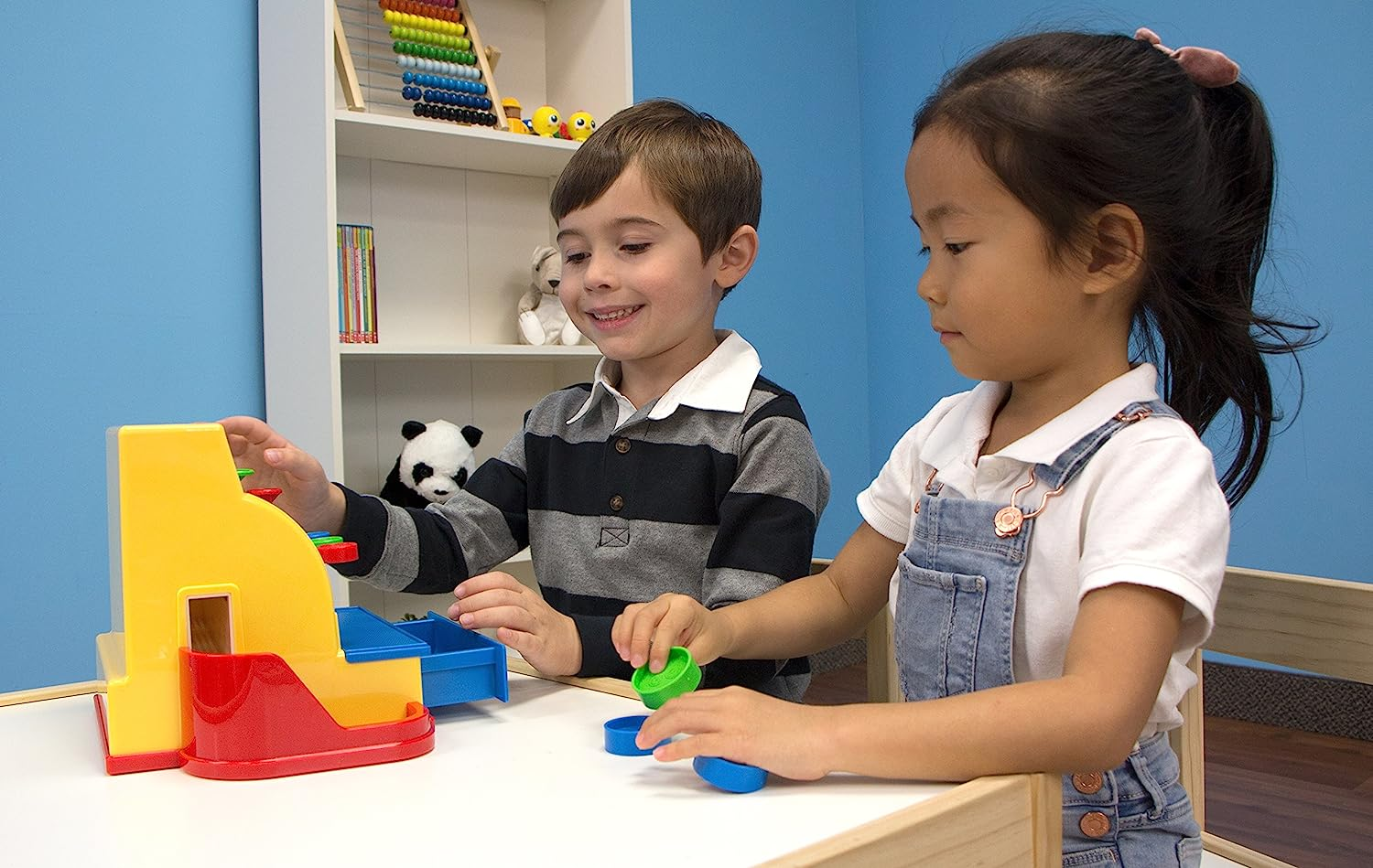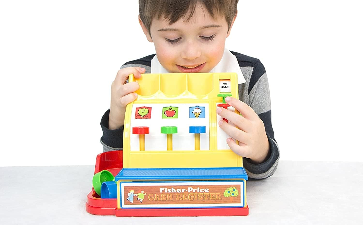 This cash register was inspired by the 1975 Fisher-Price cash register that was an instant classic toy hit. Kids will love the real cash register play! the cash register comes with different brightly colored coins that will teach children how to Count and recognize colors. watch the coins come down the ramp, turn the crank to hear the bell ring and watch the drawer open! the Fisher price cash register will create hours of play for a new generation.
