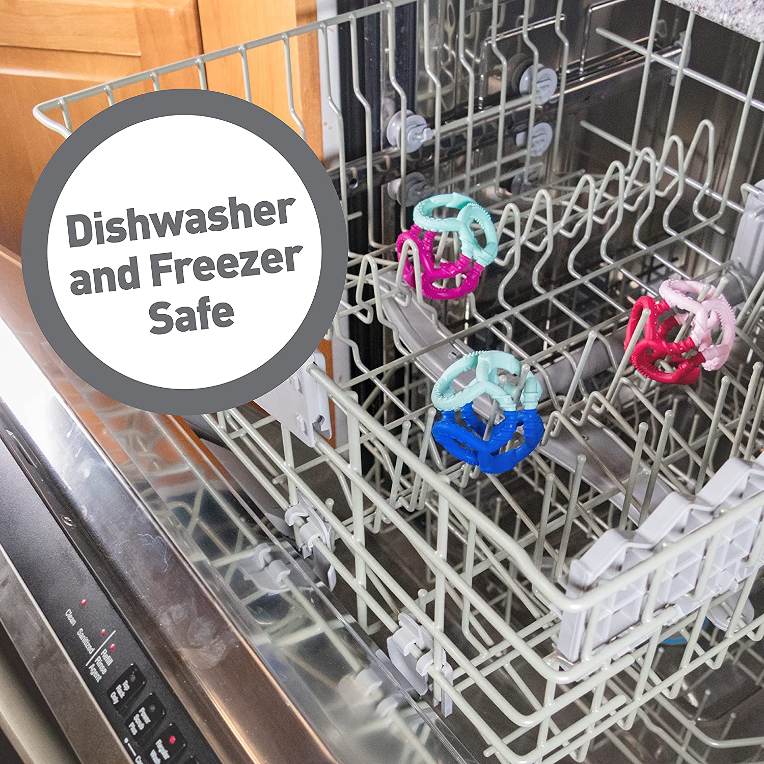 A new take on the classic Bolli with added textures for teething little ones! Gummi is a sensory development ball for kids AND babies that is great for stretching, manipulating, grasping, and teething. Its tactile sculptural design is made with soft and pliable material that can be squished and stretched. The open ball design is fantastic for shape exploration, new motor skills, and hand-eye coordination. It’s also dishwasher and freezer safe, making it great for both parent and baby!``