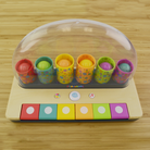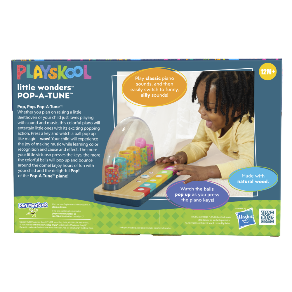 Pop, Pop, Pop-A-Tune! This colorful piano entertains little ones with its exciting popping action. Press a key and watch a ball pop up like magic! Your child will experience the joy of making music while learning color recognition and cause and effect. The more your little virtuoso presses the keys, the more the colorful balls pop up and bounce!