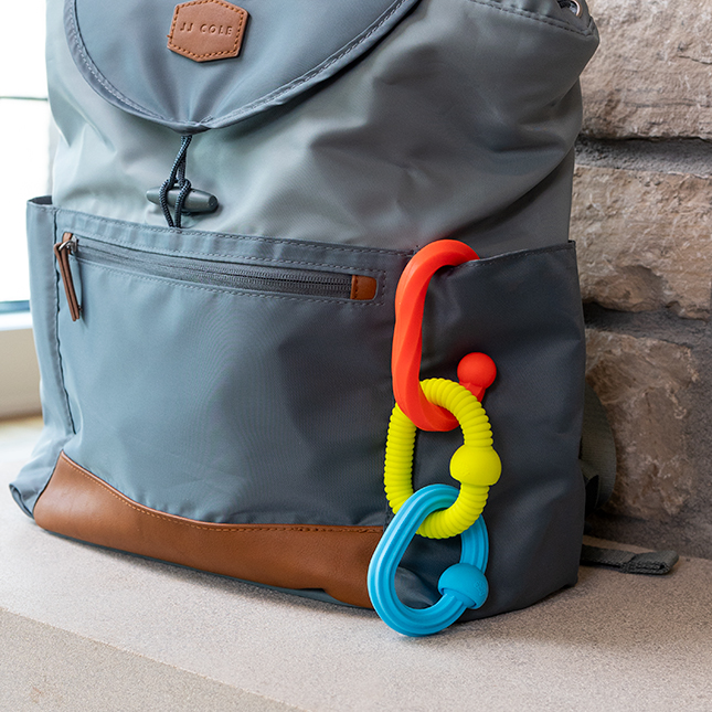 Grab, pull, POP! Each of these three silicone links is sized just right for little hands, is covered with a fascinating texture to explore, and features a ball-and-socket connection that's fun to squeeze together and POP apart. Take them along, hang them from the stroller, let baby freely explore - it's your new go-to for everywhere you go! Help your little one discover new sensory and tactile connections with Plip Grips.