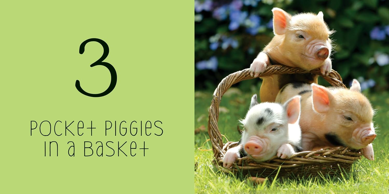 Could there be a cuter way to learn colors and numbers? Announcing a new line of board books featuring the irresistible Teacup Pigs of Pennywell Farm. Small enough to hold in the palm of your hand, the Pennywell pigs are an adorable lot. They’re also naturals in front of the camera―especially the camera belonging to Richard Austin who, as their exclusive photographer, knows just how to capture their big personalities. The Pocket Piggies board books marry the inherent appeal of Teacup Pigs to the sweetness of the board book format. The photographs are full-color, full-page, and up-close. The subjects are classics: Pocket Piggies Numbers! celebrates an ever-growing crowd of piggies, from one to ten, through a rhyming text that’s sweet and charming, to read again and again: 1 Pocket Piggy in a boat, 2 Pocket Piggies in a cup, 3 Pocket Piggies in a basket, 4 Pocket Piggies with a pup!