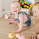 Get playtime and developmental skills rolling with Farm Friends Rollables—adorably round characters that are firm enough to roll but soft enough to squeeze! Inspire imaginative barnyard adventures through kinetic play with four farm animal Rollables that store conveniently in the package: the perky pig, cheery chicken, friendly horse, and cute cow with chime