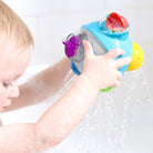 The rainshower bath ball is a bumpy, textural ball to encourage discovery and visual exploration with water play! Dunk the ball in the bath and see the different water patterns from each of the soft, flexible bumps. Separate the ball into 2 halves by unscrewing for more fill & spill play! The 2 halves make it easy to clean & dry, for mold free storage.
