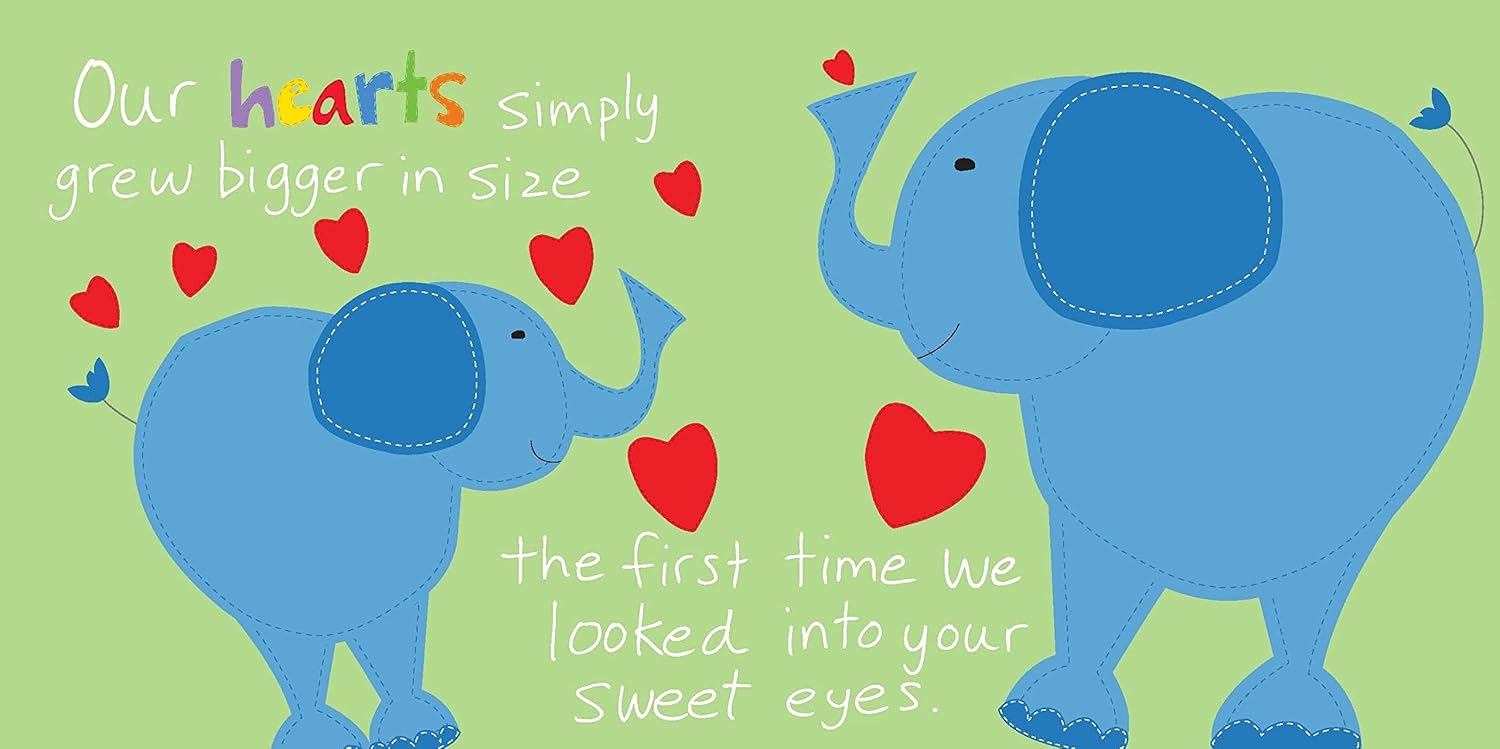 For parents, the arrival of a newborn child is an event filled with the promise of love, joy, and a lifetime of memories. In this beloved elephant board book comes a special celebration of the one-of-a-kind bond between parents and their little one. Filled with lively illustrations, gentle rhyming text, and a heartfelt message, this sweet board book for babies and toddlers is the perfect gender-neutral baby shower or infant gift to congratulate and send to new parents, or for simply expressing the love you have for the little ones in your life!