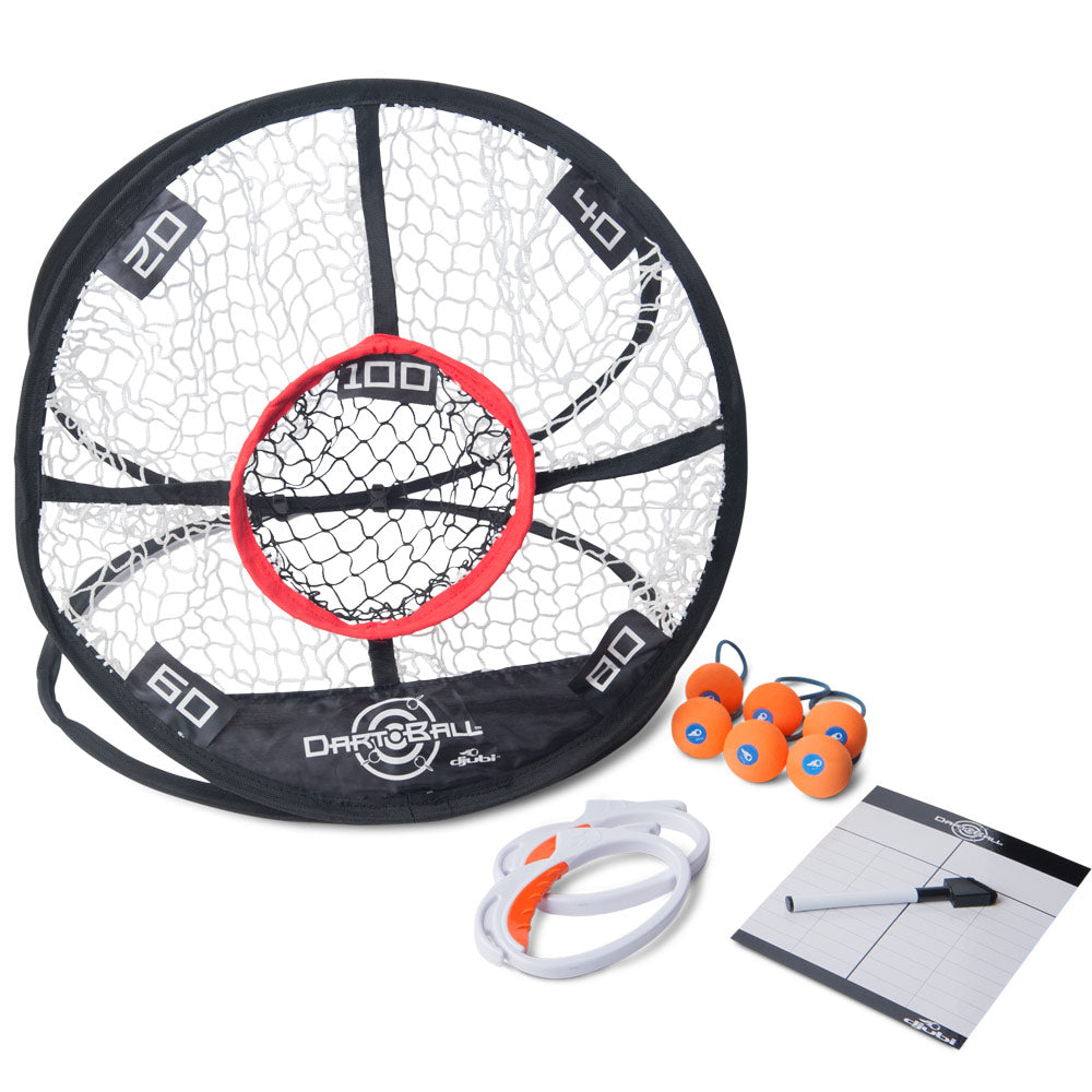 Ready, aim, fire – The Djubi Dart Ball game brings a new twist on the game of darts. With the Djubi balls and launcher, take turns firing away at the target. Whoever gets to 500 points first wins! Djubi Dart Ball is a great lawn dart game for the whole family. Includes: 2 Mini Djubi Launchers, 6 Small Djubi Balls, 1 Dart Board, 1 Dry Erase Scoreboard. WHERE TO USE: Lawn games, outdoor play, beach activities, tailgating, or the park.