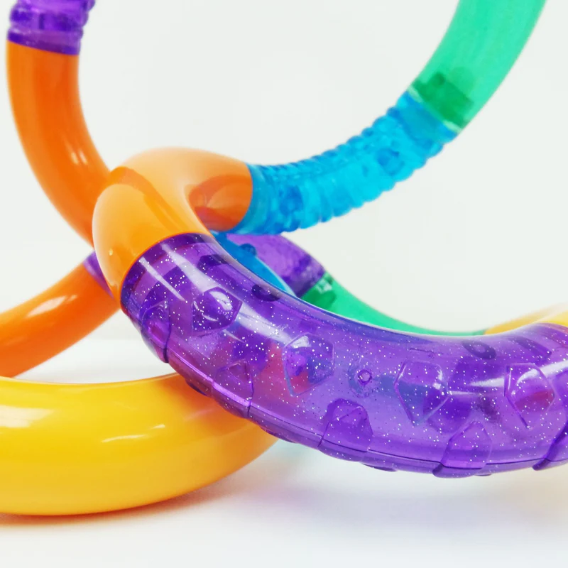 The Tangle Original Textured is the perfect Tangle for sensory and tactile fun. Its size, bright colors and cool textures makes this Tangle ideal for kids and adults of all ages. When in its coil shape, the Tangle Original Textured is approximately the size of a coffee cup. Its Magic in the Motion is perfect for harnessing the power of your creativity!