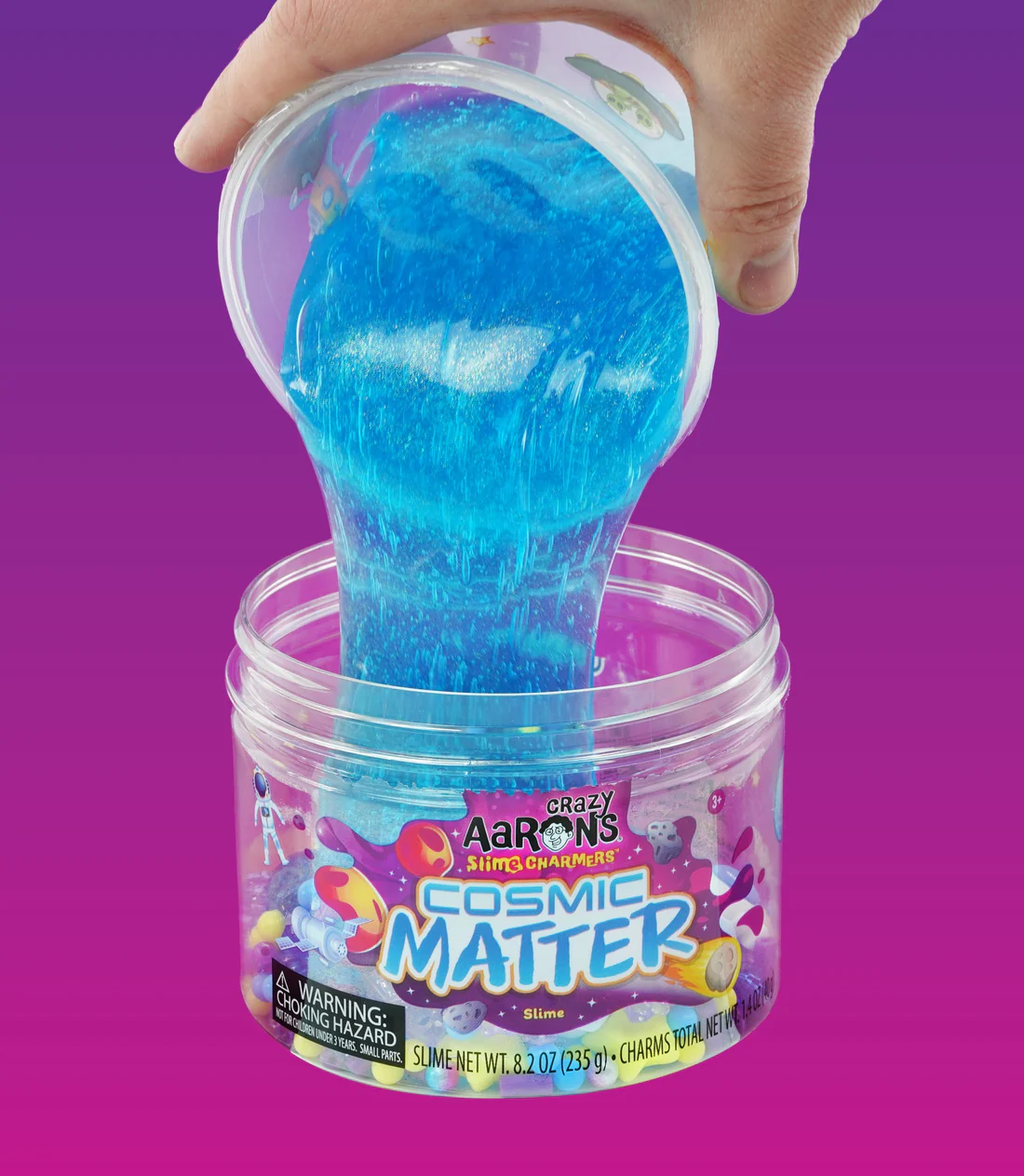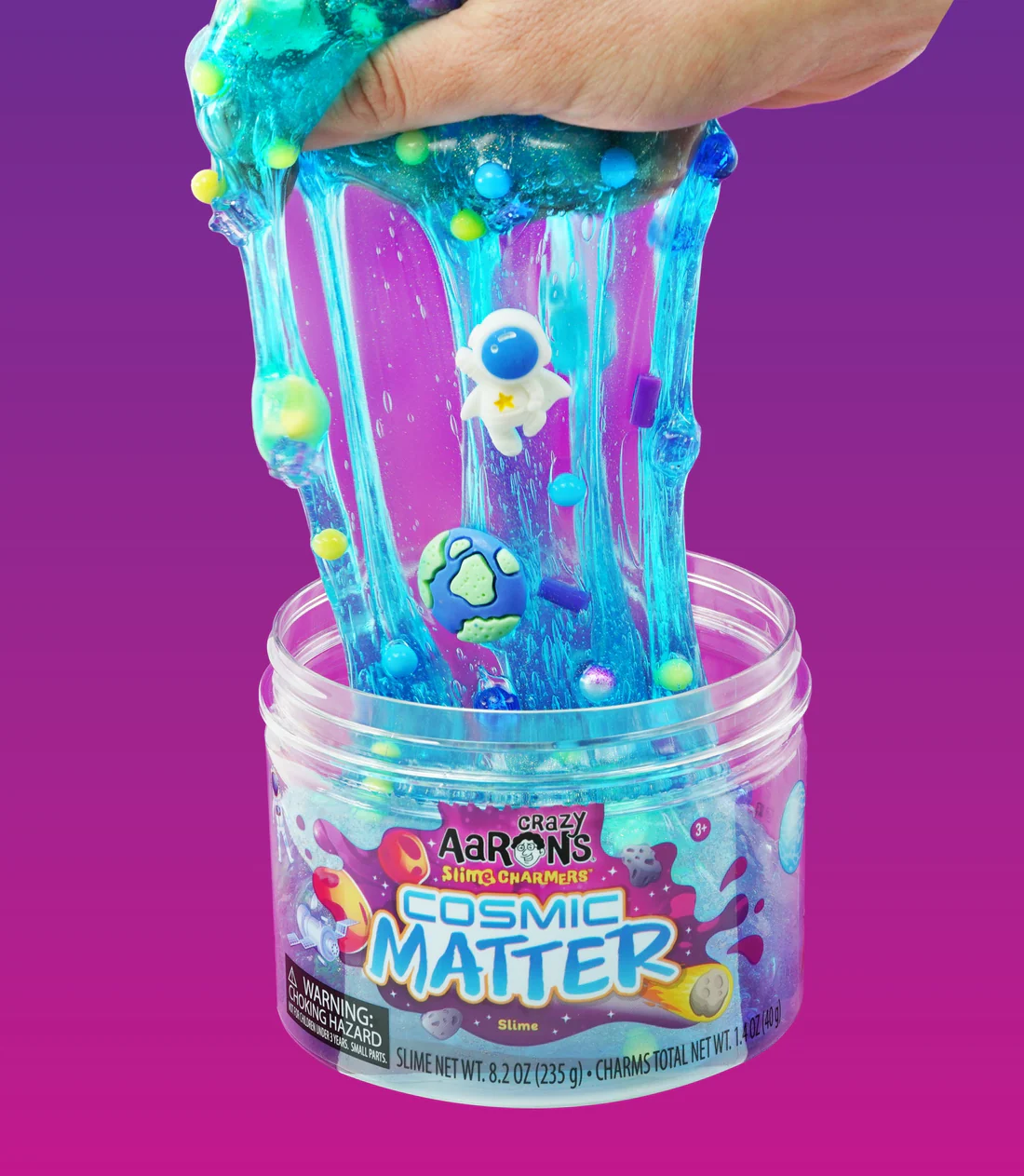 Explore your imagination with Crazy Aaron's® Slime Charmers™ Cosmic Matter. This bright blue slime and its cosmic charms will expand your creativity. Blueberry scent for the ultimate sensory experience. Mix, stretch and create with space themed charms including planets, stars and more. Create the most amazing cosmic world with Slime Charmers™ Cosmic Matter!
