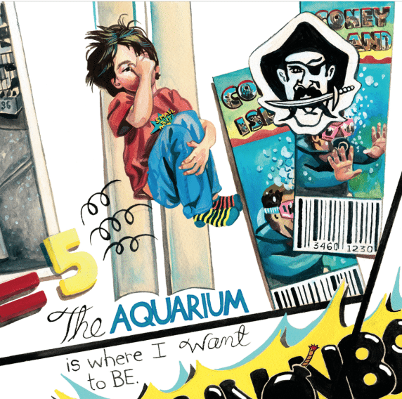 It's family dinner night, and Walden would like to be anywhere other than the kitchen in the middle of chores. Suddenly his wish is granted: He is magically swooped into one of his own drawings on the fridge, and finds himself on a one-of-a-kind adventure. After battling a crayon monster, he catches a plane ride into an old photo, escapes a troop of monkeys by cannonballing into an aquarium ticket, survives an ice-maker earthquake, and more. Kids will love studying the dynamic, comic-book-inspired illustrations in this zany, surprise-filled journey that culminates in a heartfelt appreciation of family.