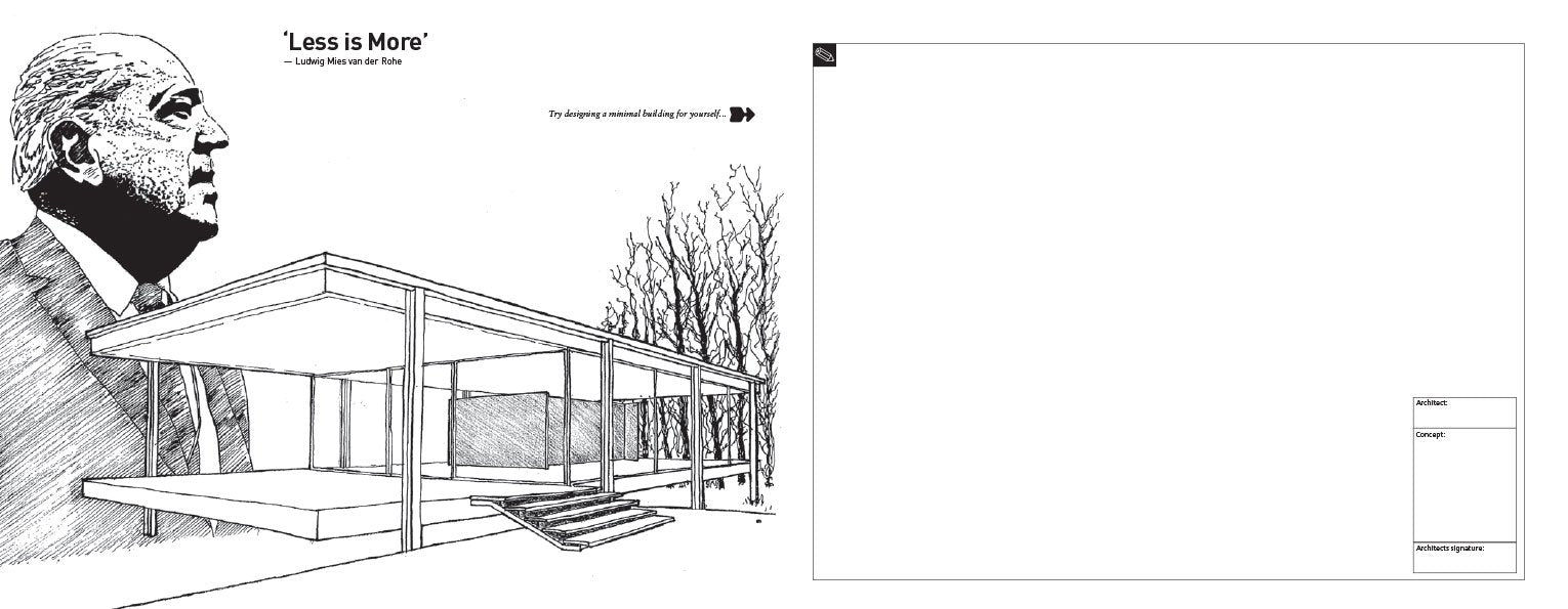 Aimed at at anyone who loves drawing buildings, it encourages the users to imagine their own creative solutions by sketching, drawing and painting in the pages of the book. In so doing, they will learn about a whole range of significant architectural issues, such as the importance of site and materials, how to furnish a space, how to read plans, how to create sustainable cities and so on.