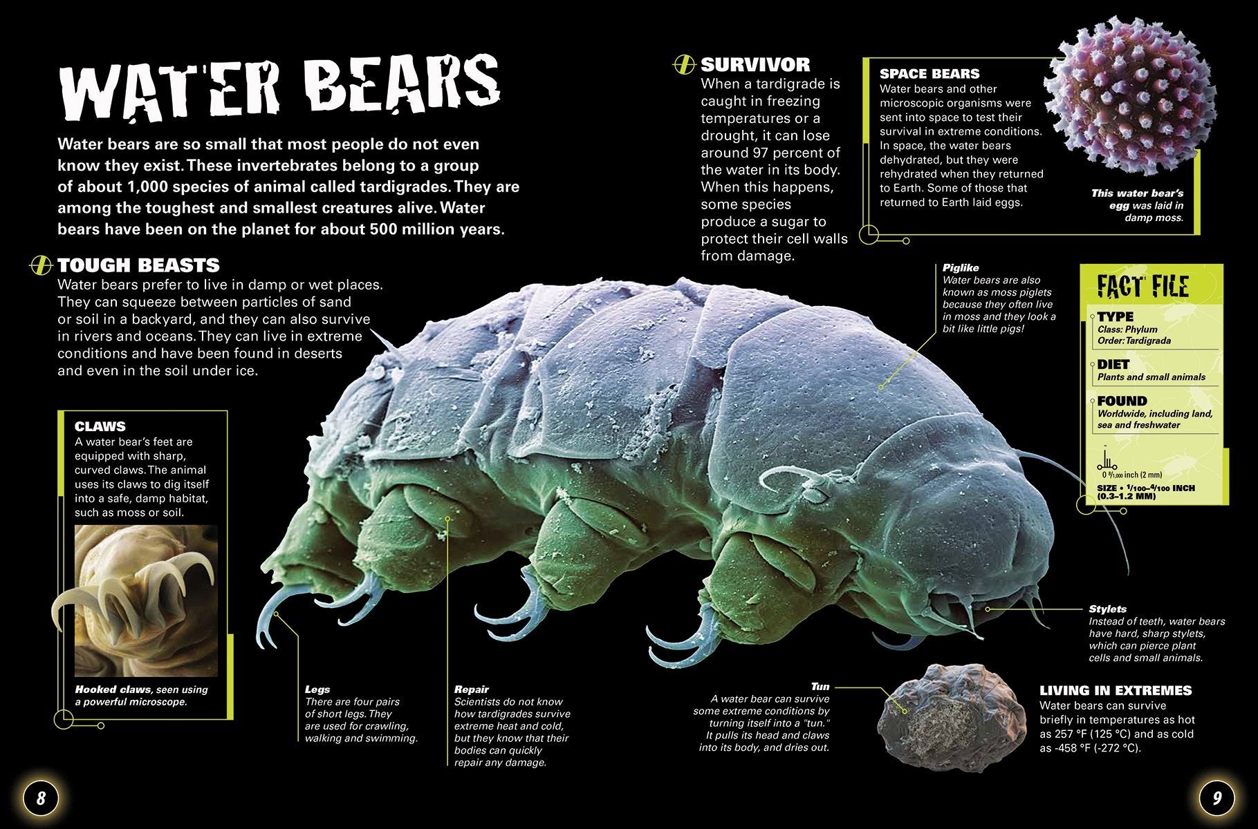 Stunning images from scanning electron microscopes give a close-up view of incredible minibeasts, revealing every hair on the back of a flea, the beautiful scales on a moth's wing, and the amazing compound eye of a fly.