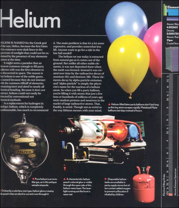 Based on seven years of research and photography by Theodore Gray and Nick Mann, The Elements presents the most complete and visually arresting representation available to the naked eye of every atom in the universe. Organized sequentially by atomic number, every element is represented by a big beautiful photograph that most closely represents it in its purest form. Several additional photographs show each element in slightly altered forms or as used in various practical ways. Also included are fascinating stories of the elements, as well as data on the properties of each, including atomic number, atomic symbol, atomic weight, density, atomic radius, as well as scales for electron filling order, state of matter, and an atomic emission spectrum.