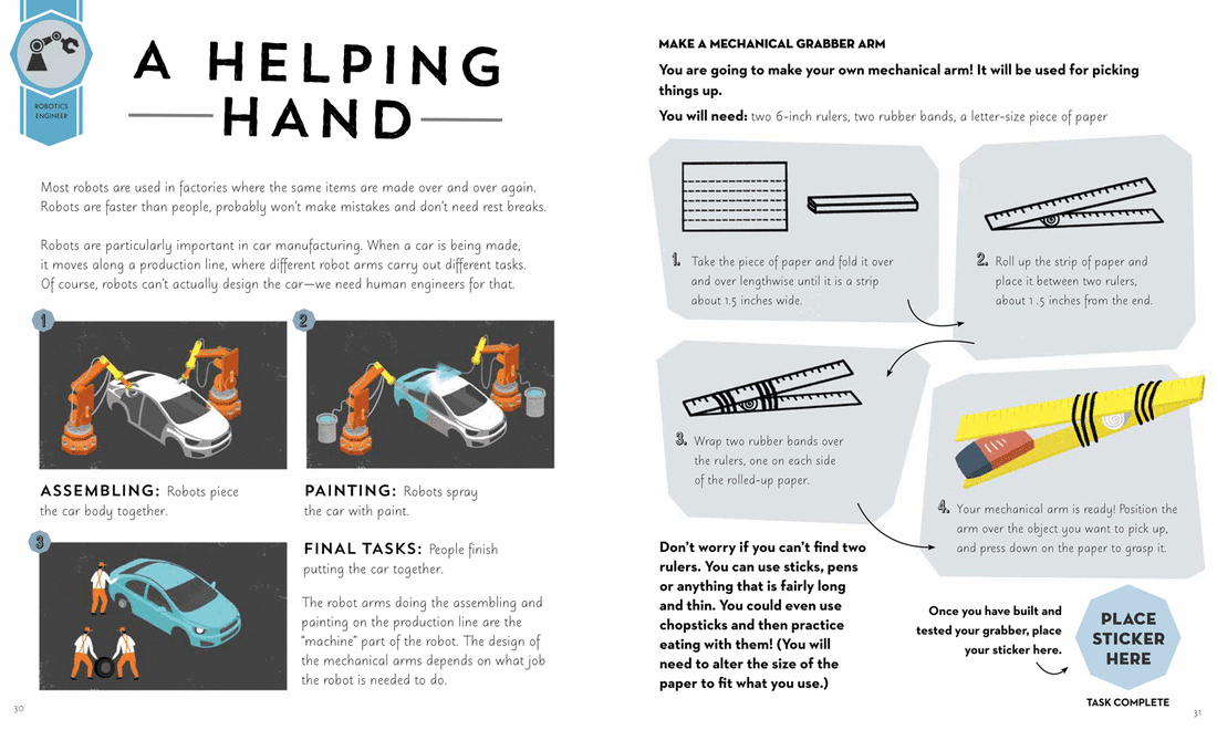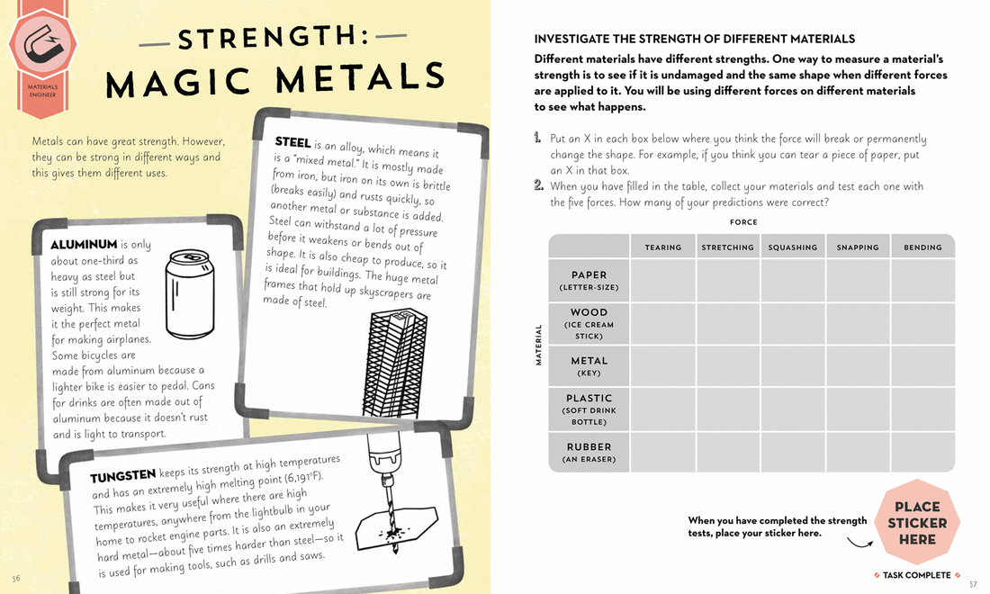 Packed full of great illustrations, fun facts, and absorbing activities, it guides readers through each strand of engineering science – Mechanics, Aerospace, Robotics, Energy, and Materials. Practical projects, each carefully designed to introduce the kinds of skills required by real-life engineers, help kids pick up the basics in a fun, hands-on way.