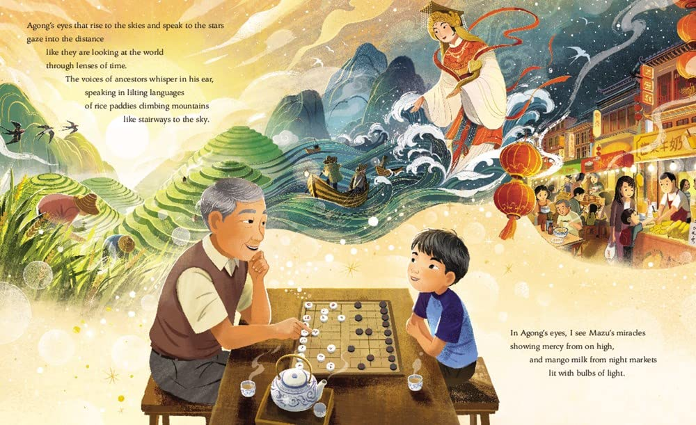 A young boy comes to recognize his own power and ability to change the future. When a friend at school creates a hurtful drawing, the boy turns to his family for comfort. He realizes that his eyes rise to the skies and speak to the stars, shine like sunlit rays, and glimpse trails of light from those who came before—in fact, his eyes are like his father’s, his agong’s, and his little brother’s, and they are visionary.
