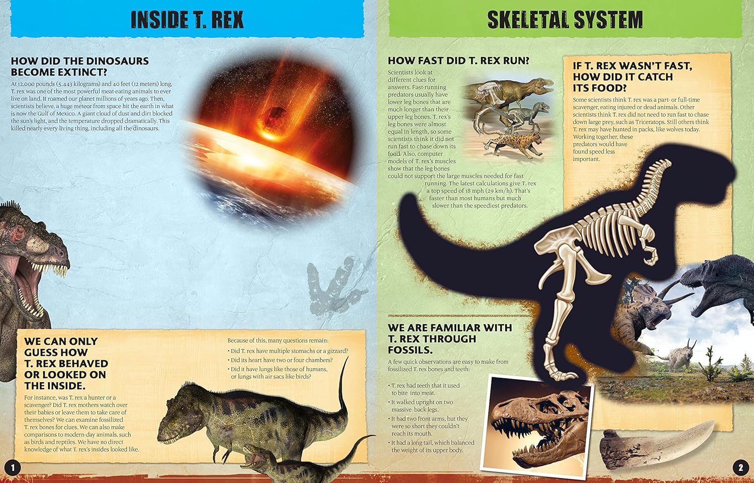 You won’t need a time machine to see this giant, fearsome predator in amazing detail! Each page of Inside Out T Rex brings you even deeper into the world of the Tyrannosaurus rex. Explore all your questions about this incredible creature, including: