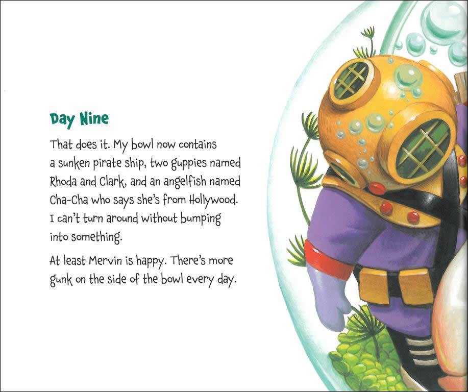 And so it goes in this tell-all tale from a goldfish. With his bowl to himself and his simple routine, Goldfish loves his life ..until one day... When assorted intruders including a hyperactive bubbler, a grime-eating snail, a pair of amorous guppies, and a really crabby crab invade his personal space and bowl, Goldfish is put out, to say the least. He wants none of it, preferring his former peace and quiet and solitude. But time away from his new companions gives him a chance to rethink the pros and cons of a solitary life. And discover what he's been missing.