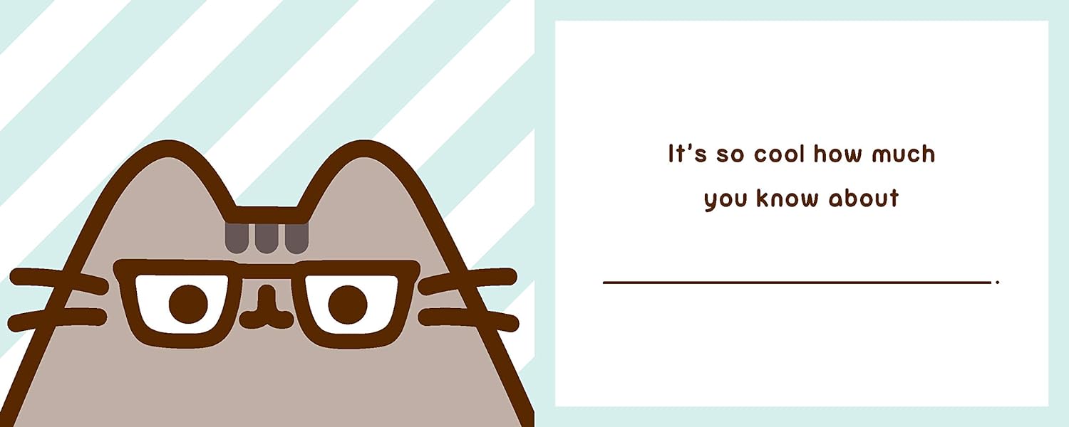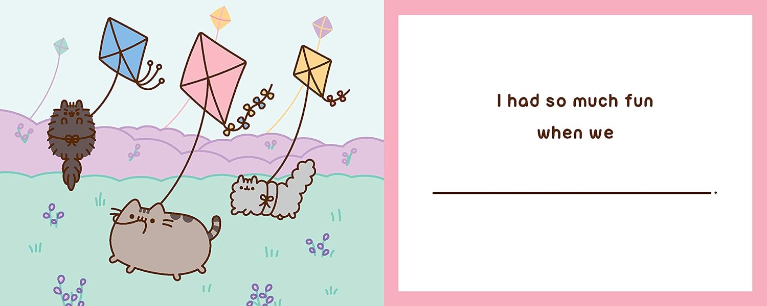 Tell your friends and loved ones "I like you more than pizza" with this charming fill-in book, featuring prompts inspired by the internet's favorite chubby tabby cat. Pairing 46 sweet and endearing fill-in-the-blank prompts with cheeky, humorous illustrations, this book offers a fun way to craft a personal and one-of-a-kind gift for your friend, sister, parent, or significant other. Prompts include: "We made a great team when we _____" next to a picture of Pusheen and her sister Stormy building a snowman "I kinda like you because _____" with Pusheen looking at herself in the mirror "I love the _____ you gave me" paired with a picture of Pusheen in a cardboard box "You are beautiful to me because _____" illustrated by the majestic Pusheenicorn "Let's go _____" with Pusheen holding a suitcase