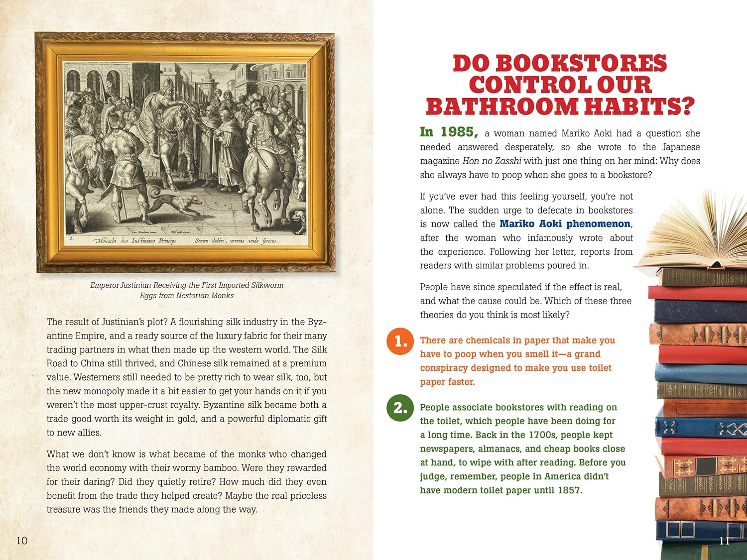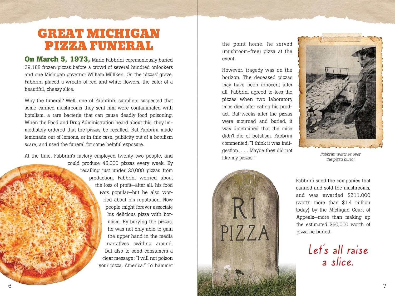 Have you ever heard about Napoleon's battle with rabbits? What about the time a headless chicken went on tour? Prepare to be amazed by this impressive collection of events, legends, and fads from throughout history, from the Dancing Plague of 1518, to the Buttered Cat Paradox, to the Great Michigan Pizza Funeral. Amaze friends and family with unbelievably weird (and sometimes gross) trivia, and dive into the oddities of our strange world. The perfect read-aloud book for long road trips, sleepovers, and any place you need bizarre entertainment! Discover quirky history from all over the globe. Wacky stories make learning loads of fun! Full-color illustrations throughout. Fun trivia book measures 6-1/2'' wide x 9-1/4'' high. Sturdy hardcover binding ensures years of reading amazement. 128 pages of stories about all kinds of weird stuff!