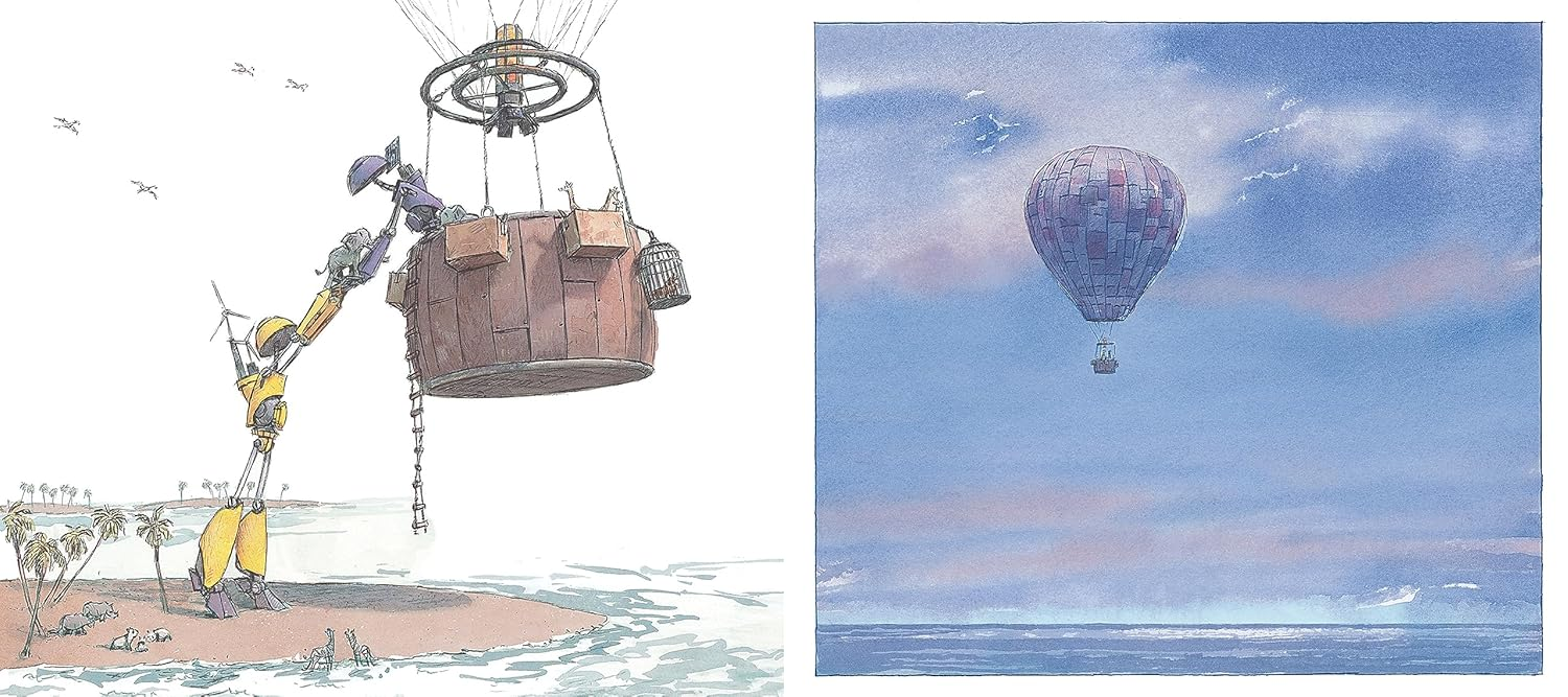 A master of the wordless form imagines a futuristic Noah’s Ark in a luminous sci-fi parable for our changing world. The Earth has flooded. The only signs of humankind are the waterlogged structures they left behind. Peeking out from the deluge are the remnants of a zoo, home to rare and endangered animals, survivors of long neglect. Tender-hearted NOA is a construction robot who’s found new purpose as the caretaker of the zoo’s beleaguered inhabitants. Bracing for the next storm, NOA builds an ark from the wreckage in search of new land and a new home, only to discover something even more profound. With boundless compassion and sweeping scenes of sea and sky punctuated by detailed wordless panels to pore over, Caldecott Honor–winning creator Aaron Beckerdelivers a timely and concrete message about the rewards of caring in even the most difficult of times that is sure to inspire the dreamers among us.
