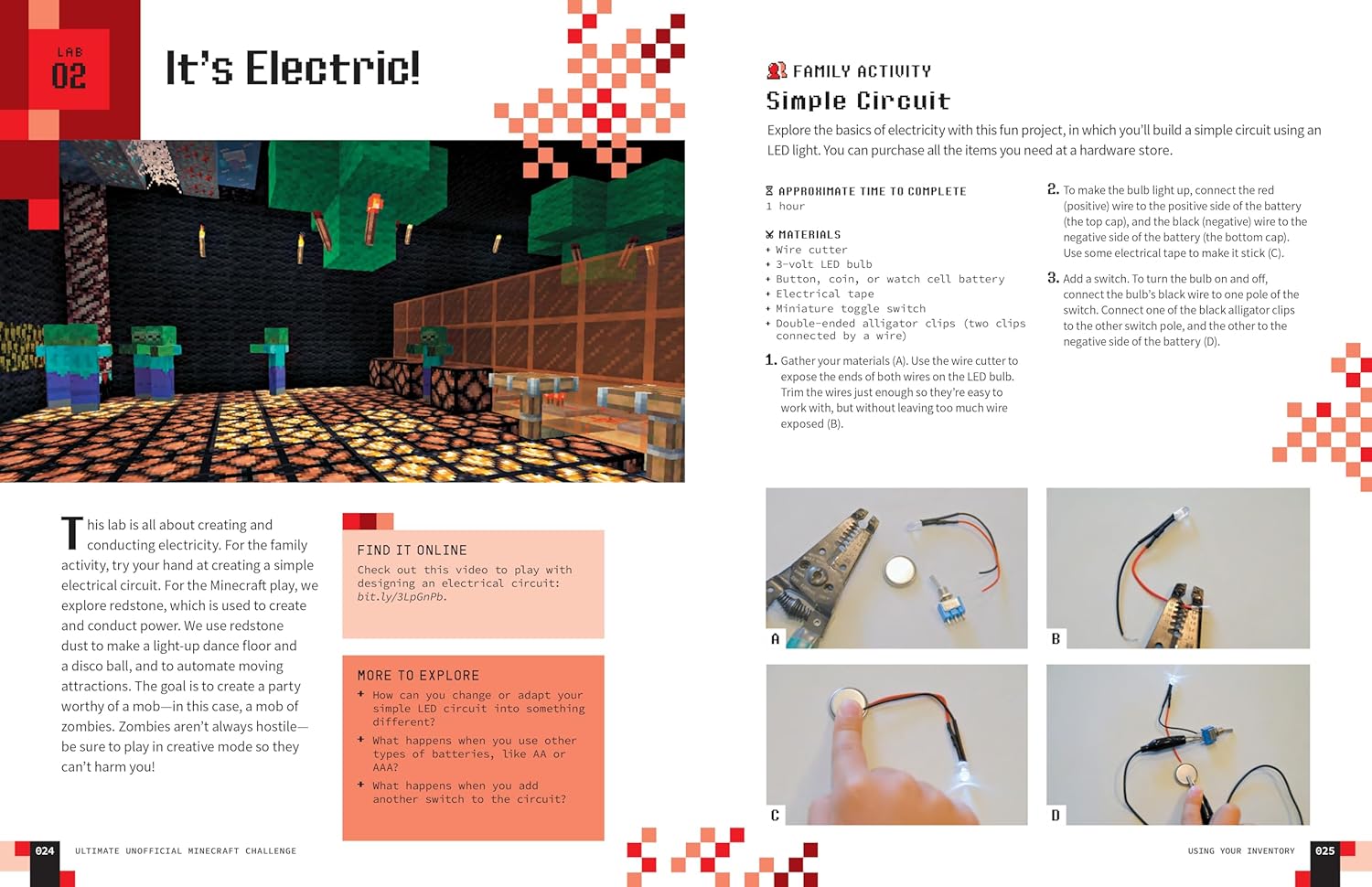 Kids ages 7 to 11 and their families will especially enjoy this fun and unique approach to learning about Minecraft as an educational tool and working on art and craft activities or STEM experiments together.