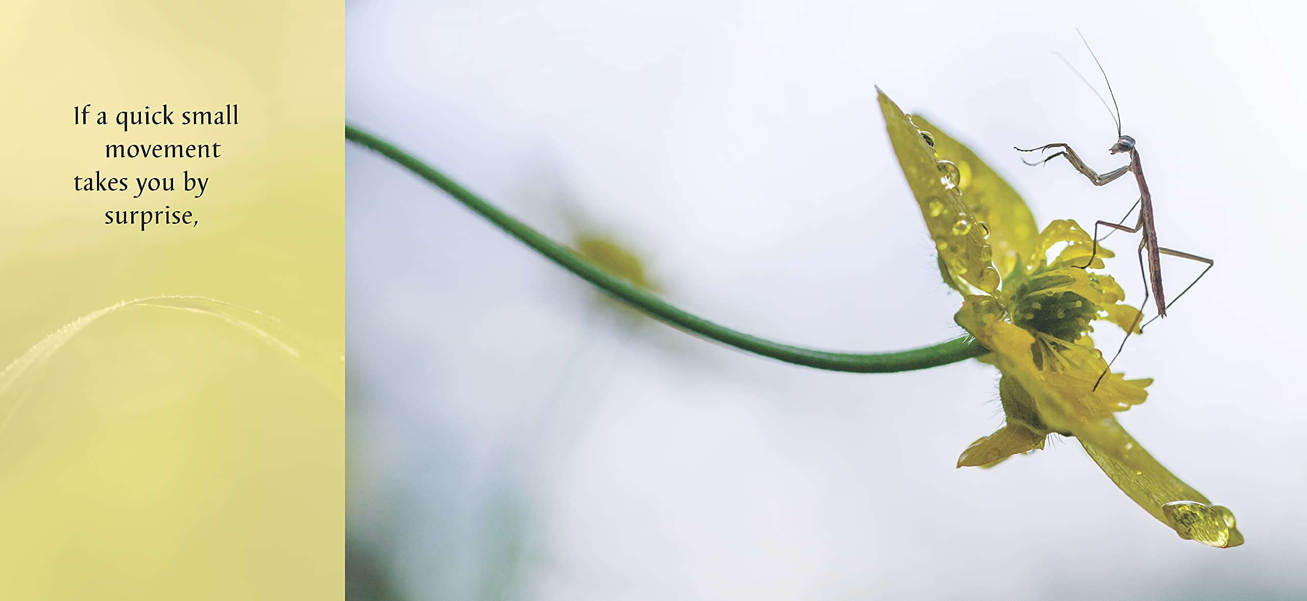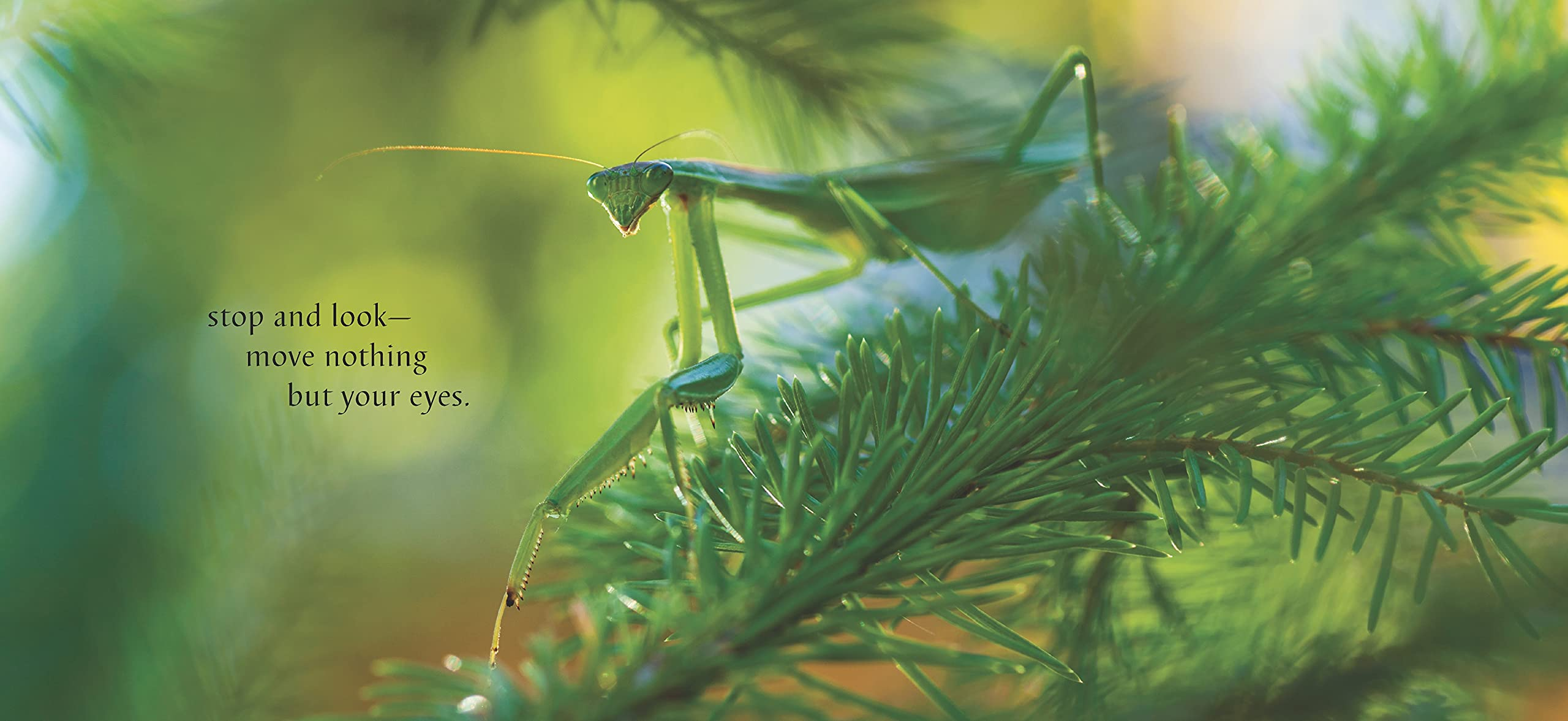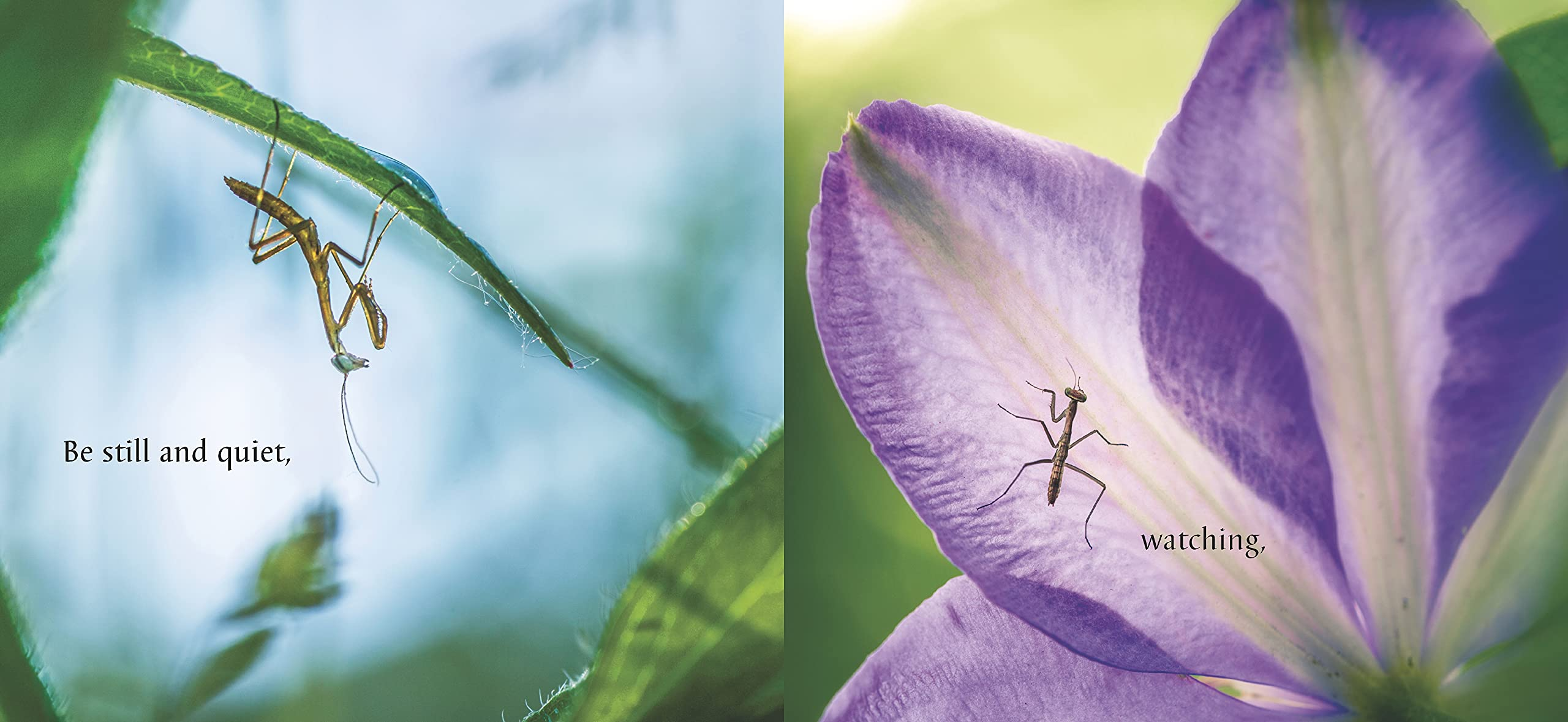 Longtime collaborators Helen Frost and Rick Lieder team up for a breathtakingly beautiful glimpse at the praying mantis—and entice us to take the time to open our eyes to the world in front of us. The creators of Step Gently Out and many other acclaimed picture books join forces again to look closely at an iconic insect through lyric words and stunning nature photography.When you are outside, if a small quick movement takes you by surprise, stop and look—move nothing but your eyes. Could it be a praying mantis, trying not to be seen? This sixth stunning collaboration between Helen Frost and Rick Lieder urges young readers into the wild outdoors, inviting them to “wait and see” what wonders patient observation has in store.